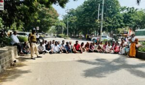 बारामती मध्ये रस्त्याच्या कामासाठी रस्ता रोको आंदोलन आंदोलन कर्ते राज कुमार यांनाच रस्त्याच्या खड्ड्यामध्ये पडून दुखापत.